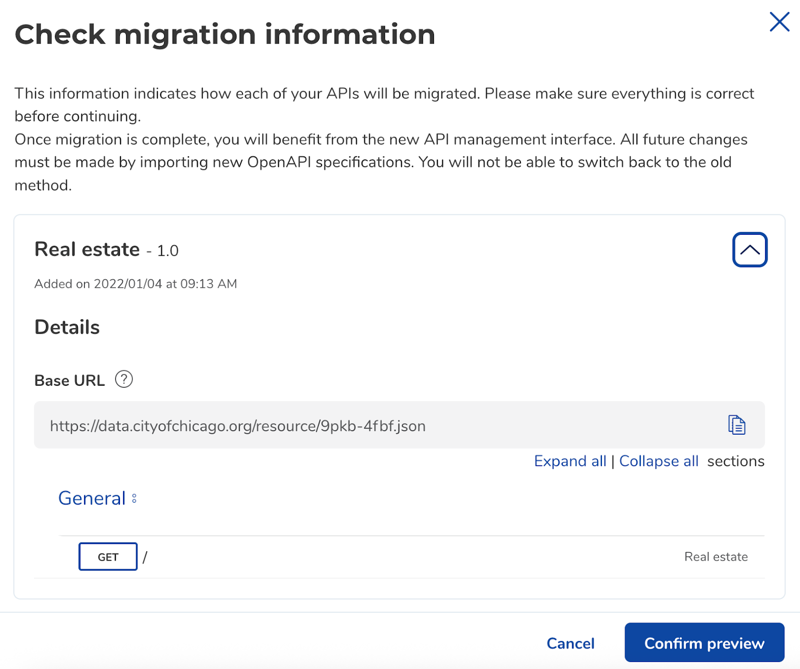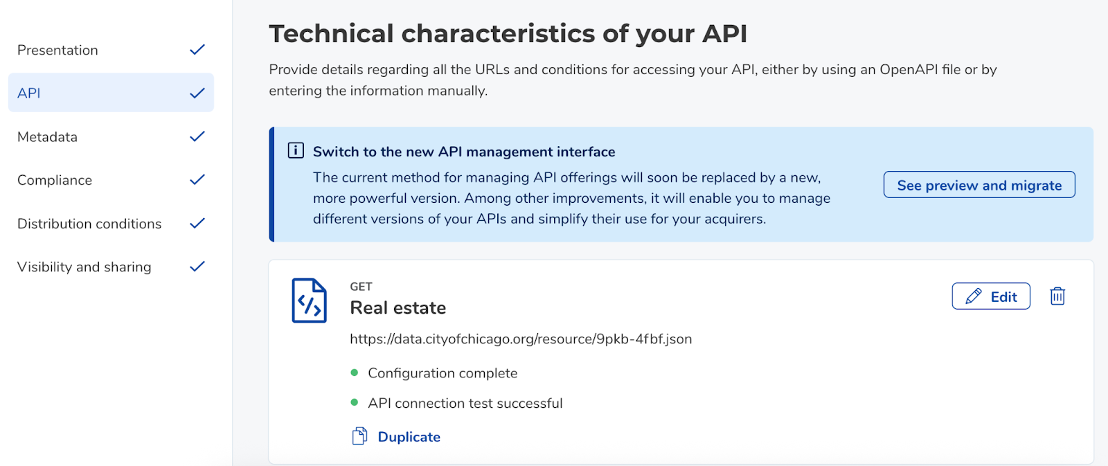 As a data provider, if you have a PULL API data offerings created in manual mode (legacy mode no longer available on the Participant Portal), you now have a banner in the API step of the data offering creation allowing you to migrate your PULL API to a PULL API data offering using an OpenAPI specification.